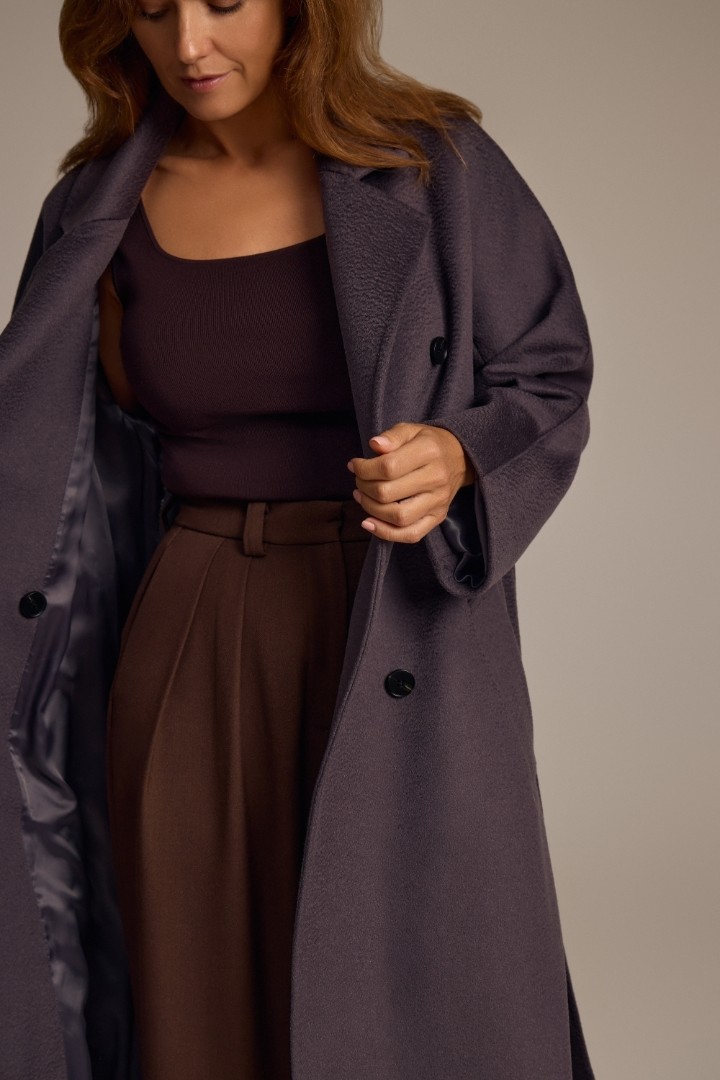 Пальто из мягкого кашемира с шерстью с вискозной подкладкой в роскошном графитовом цвете