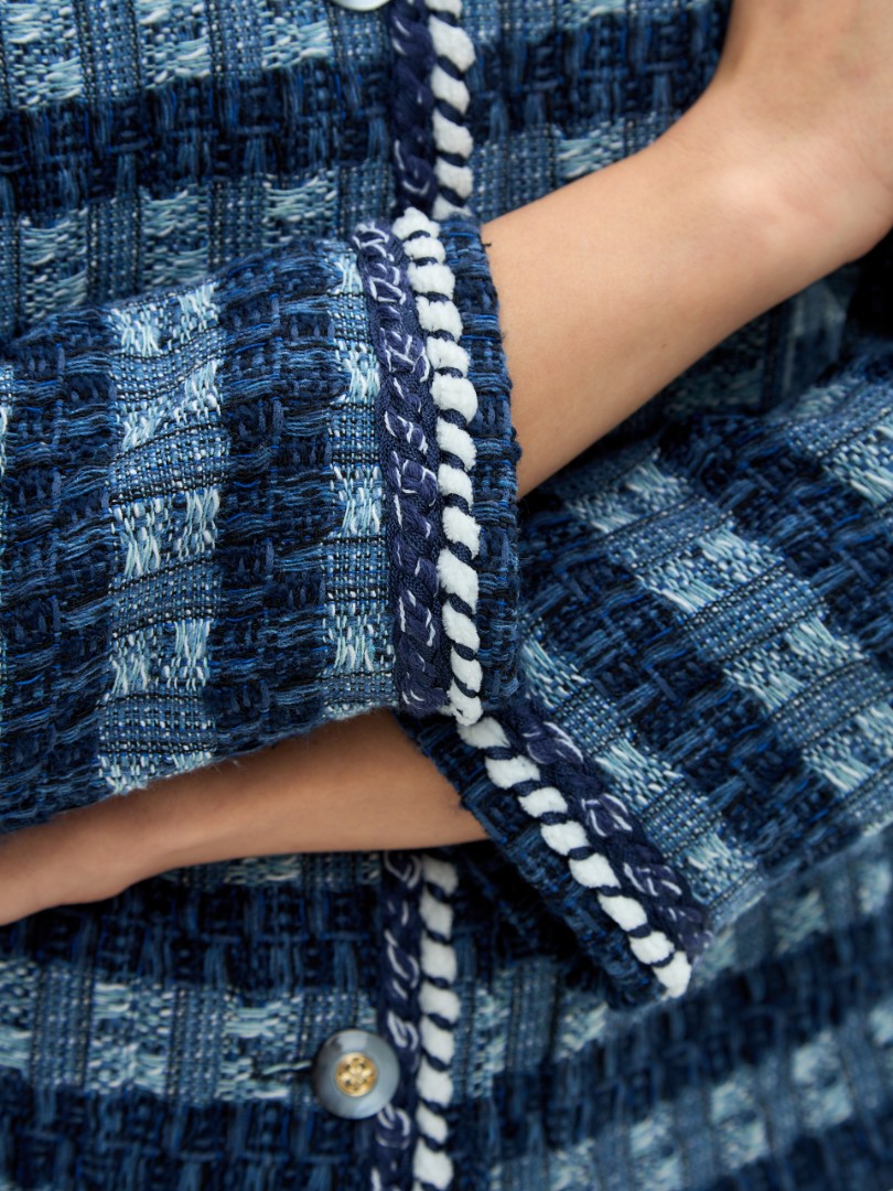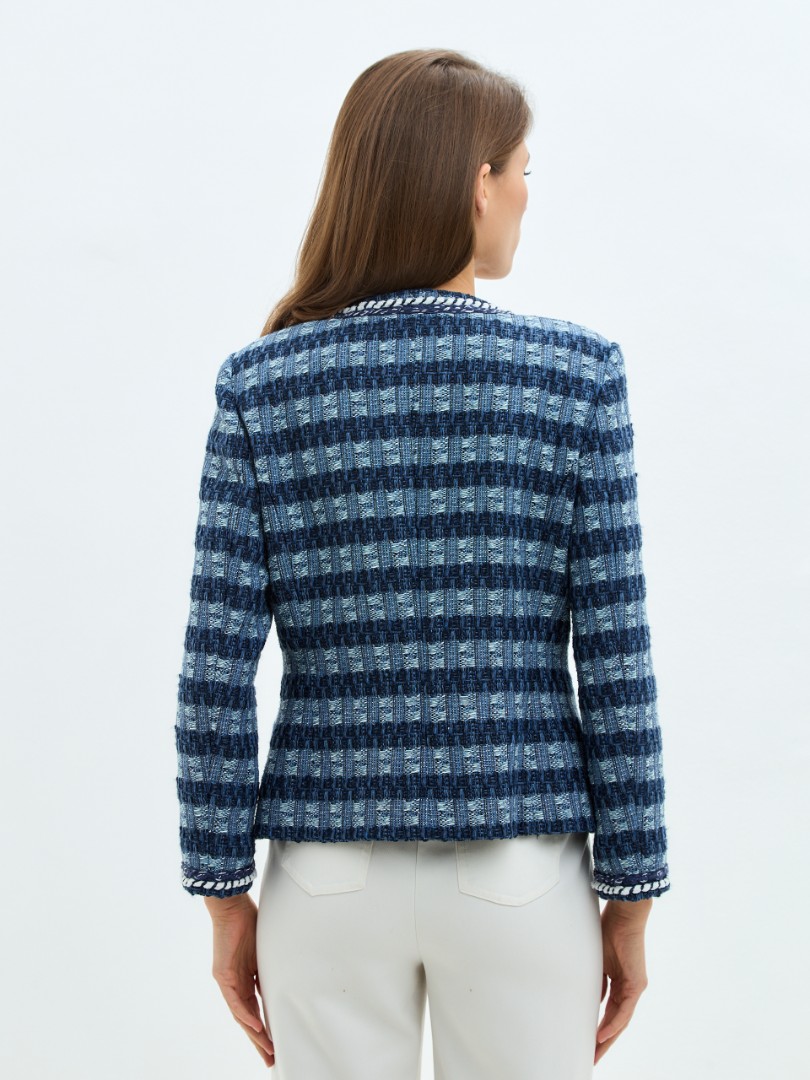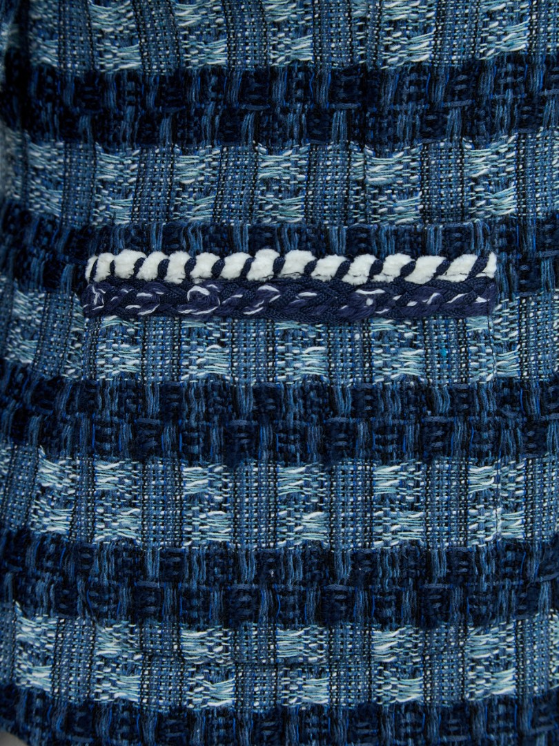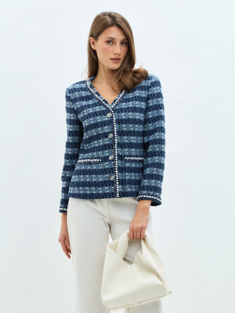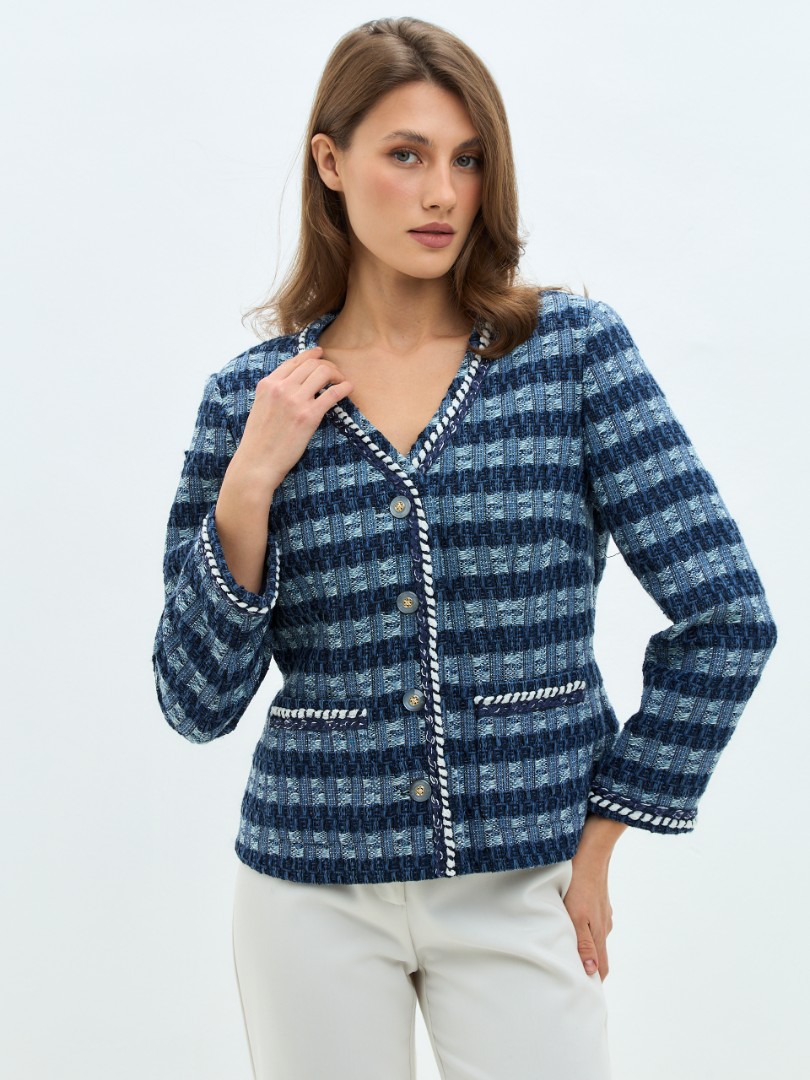 жакет из мягкого твида с V вырезом на пуговицах в оттенках синего