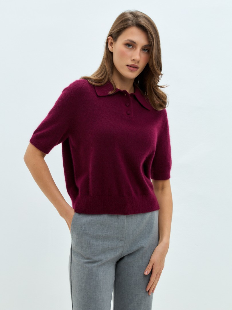 Стильная модель в насущенном цвете Burgundy с коротким рукавом