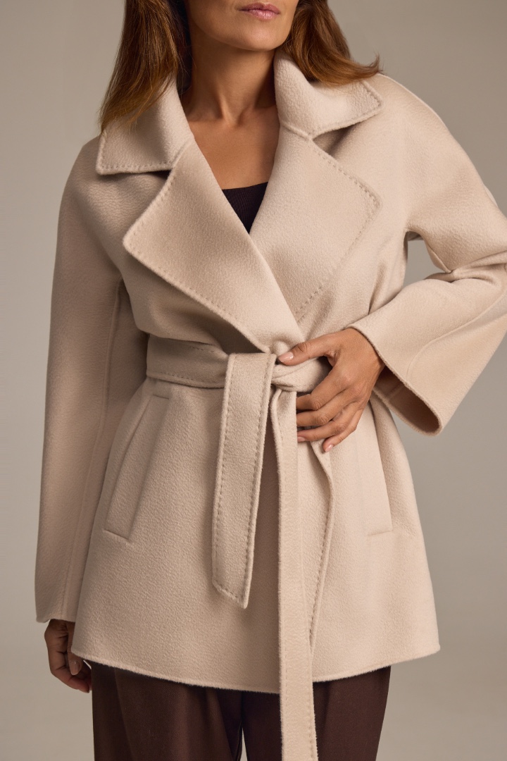 Полупальто из нежного и плотного кашемира с шерстью с широкими лацканами и удобными карманами
