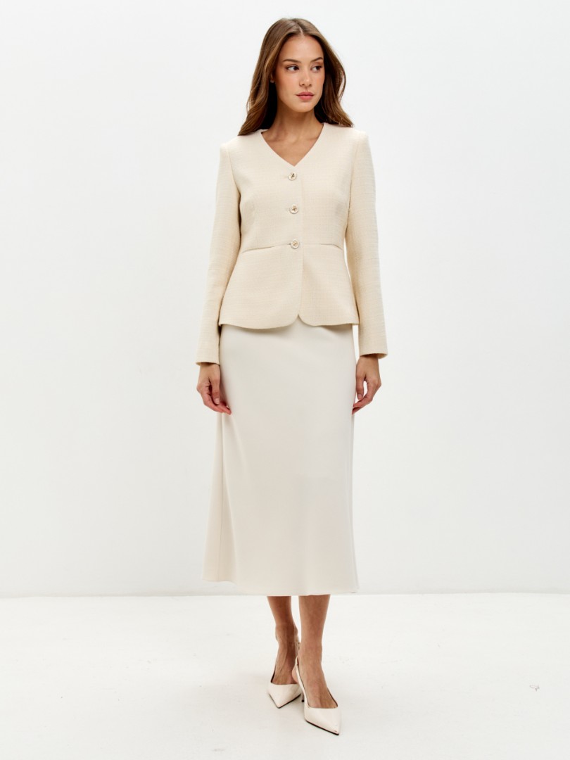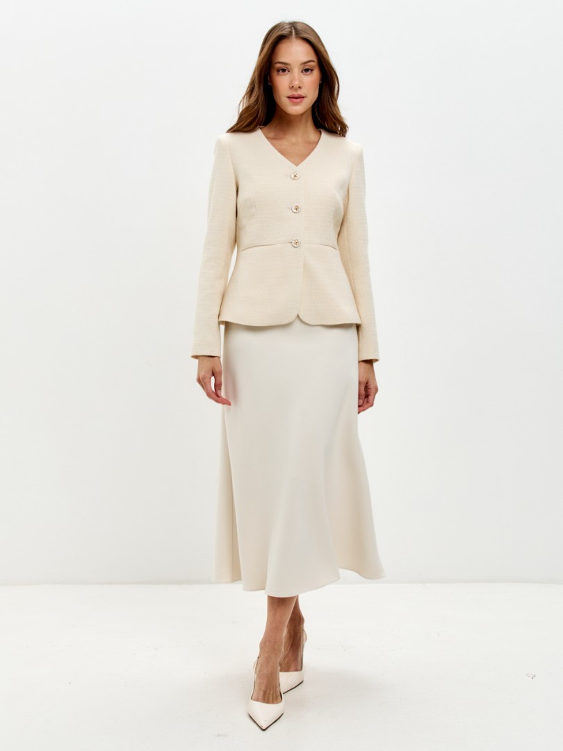 Юбка А-силуэта из мягкой костюмной вискозы на подкладке выполнена в идеальном крое, подчеркивающем женственность фигуры